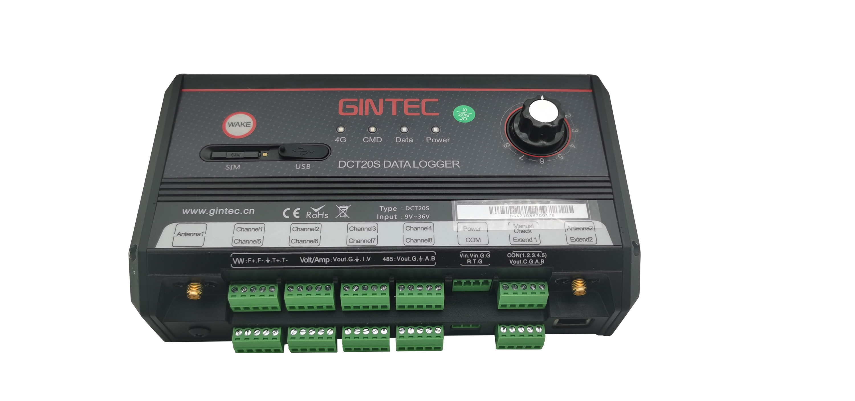 DCT20S Data Logger is designed and developed by GINTEC and is a Low power consumption & cost-saving solution for geotechnical field.It supports Vibrating Wire sensors, Current sensors, Voltage Sensors and 485 sensors.